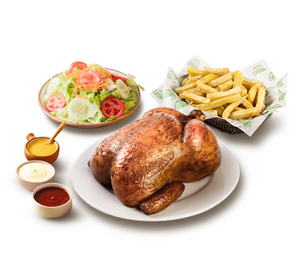 1 Pollo a la Brasa + Papas Fritas Familiares + Ensalada Clásica Familiar a S/49.90