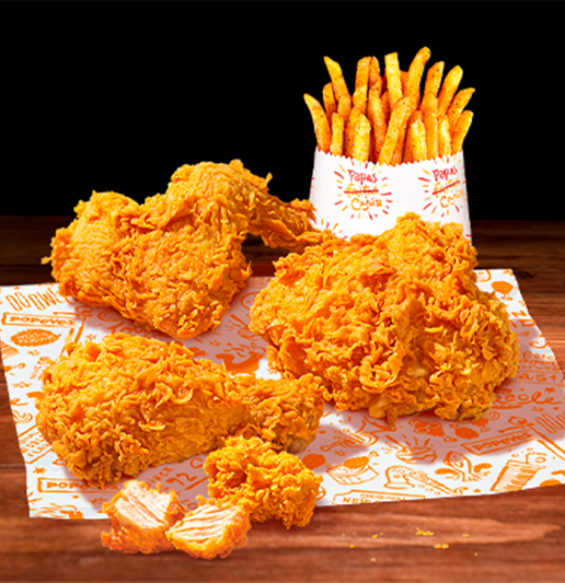 - Promoción válida del 01 de abril al 31 de junio de 2026. Promoción de 6 piezas de pollo + 2 papas cajún regulares + 2 gaseosas Jr. A 39.90. Promoción válida para salón y llevar. Máximo 2 promociones por cliente por día. Piezas sujetas a disponibilidad del restaurante al momento de la compra. Stock sujeto a disponibilidad por tienda. Imágenes referenciales. EP DE FRANQUICIAS S.A.C. RUC: 20545699126.TM & © 2025 Popeyes Louisiana Kitchen, Inc. Usado bajo licencia. Todos los derechos reservados.